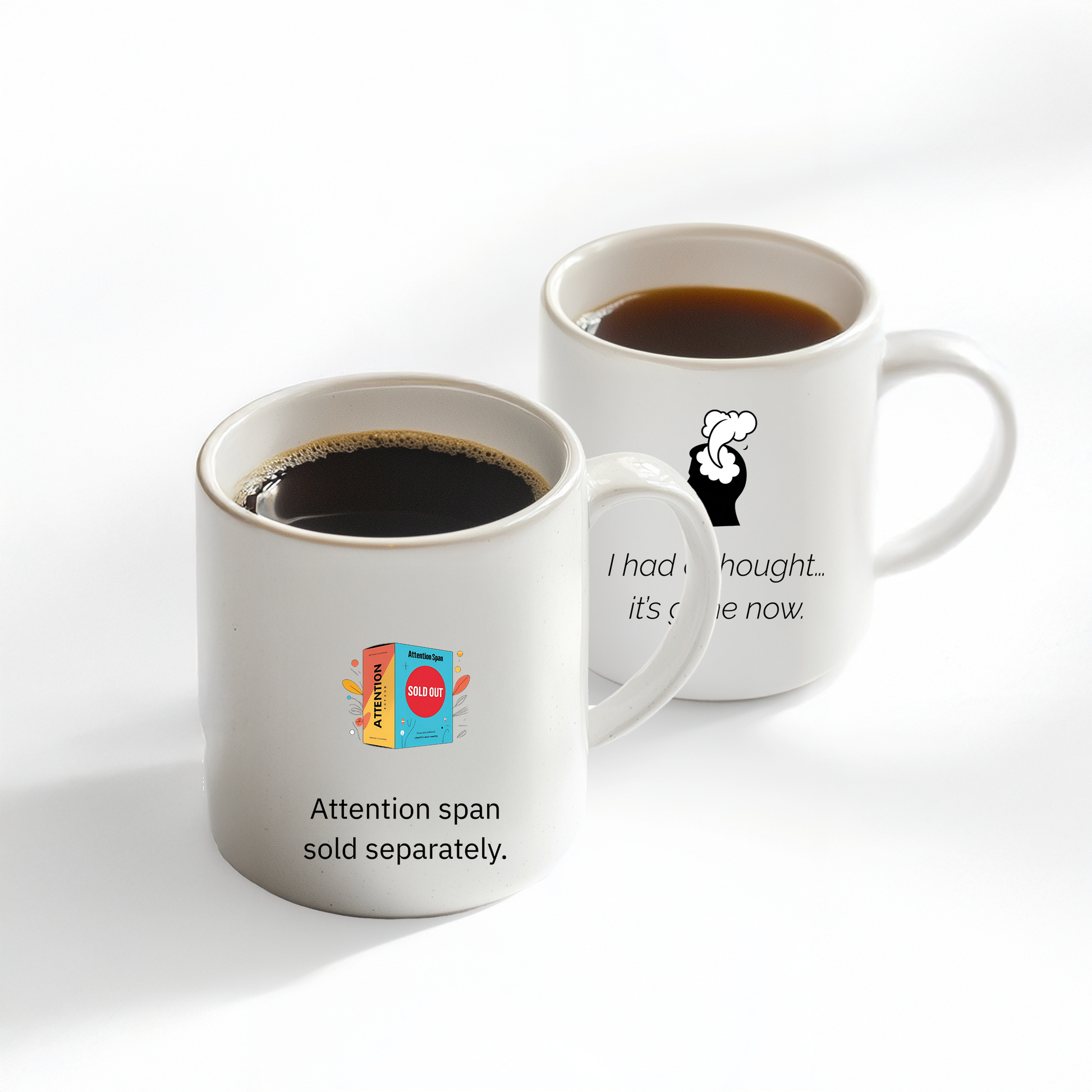 Whether you're hyperfocused, multitasking badly, or just trying to remember what you walked into the room for—this ADHD-themed coffee mug has your back. Featuring a clean, relatable design and hilarious phrase, it’s the perfect daily reminder that you're not alone (and that coffee helps).