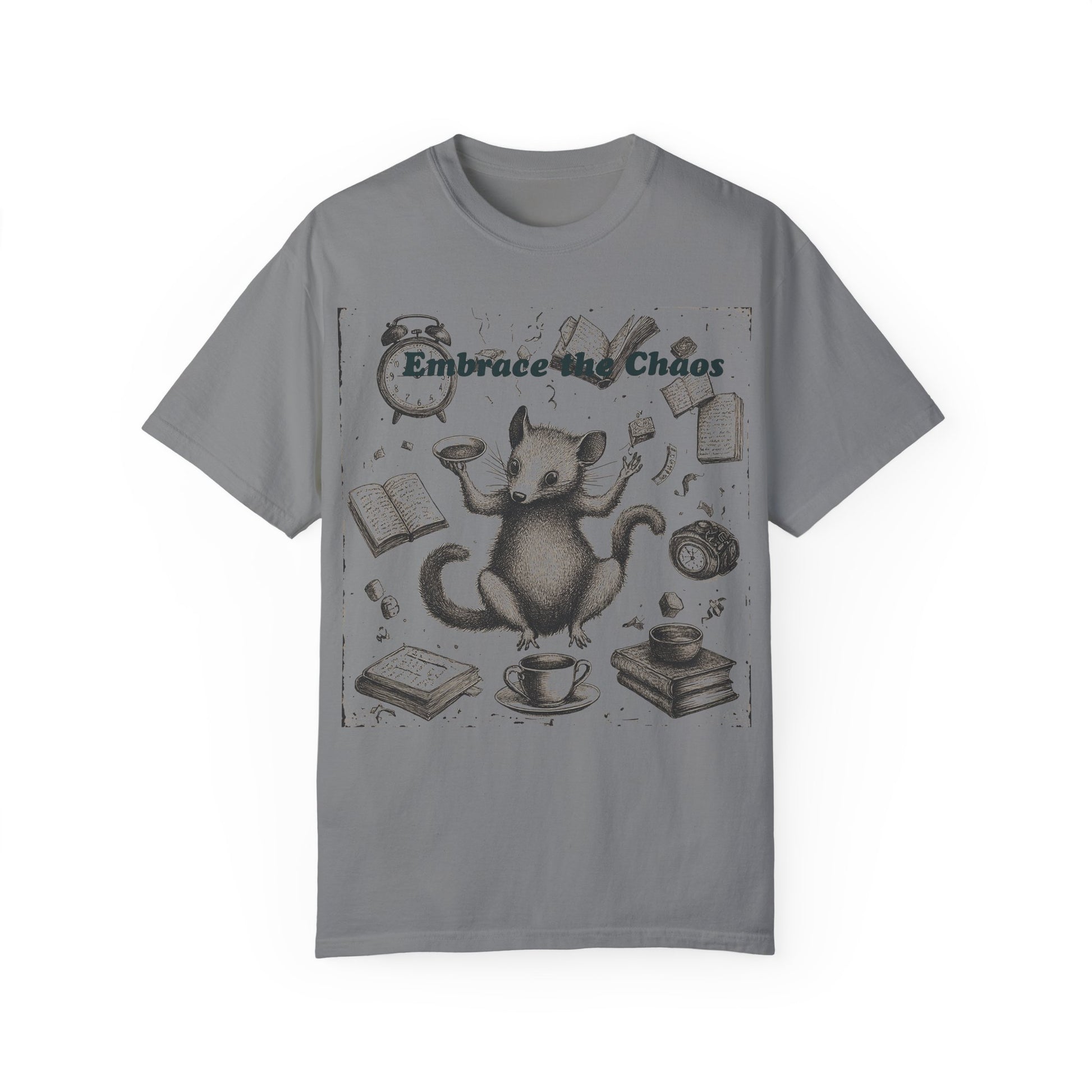 Embrace the Chaos Possum Tee – Comfort Colors Graphic T-Shirt | Whimsical Chaos Creature Shirt | Cozy Relaxed Fit Daily Tee