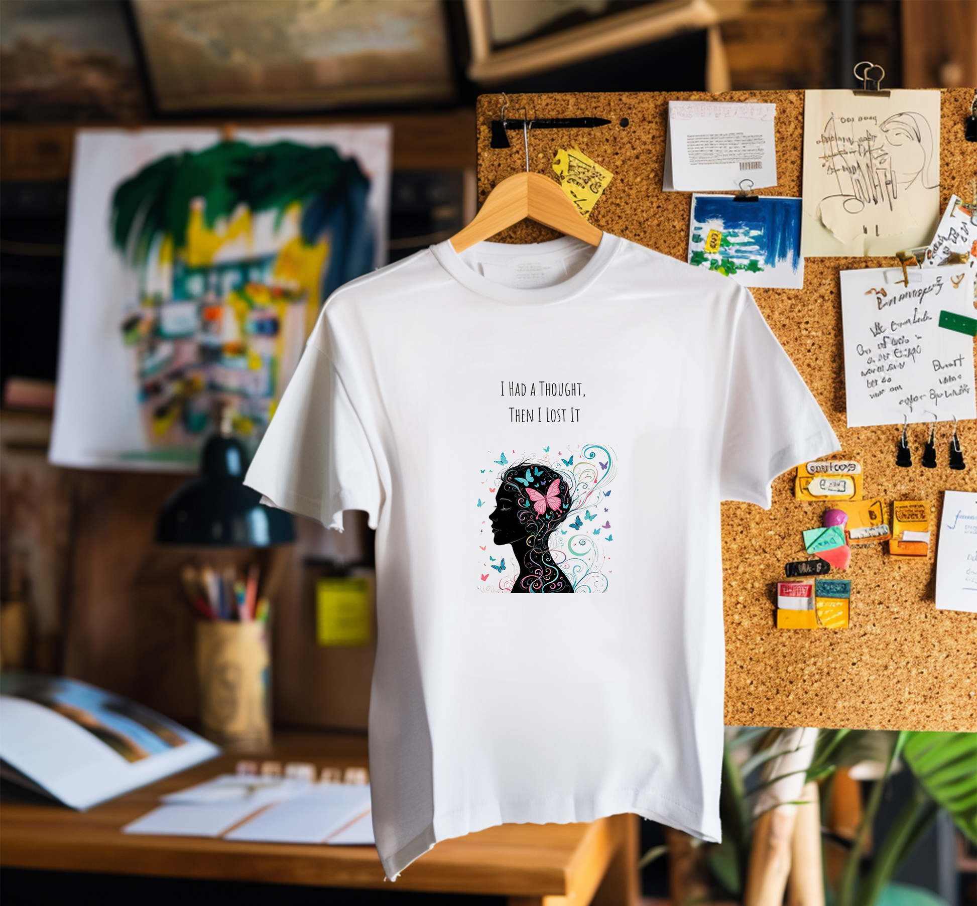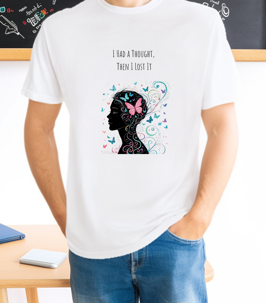 I Had a Thought Then I Lost It T Shirt ADHD Humor Gift for Neurodivergent Minds Comfort Colors Tee with Butterfly Illustration