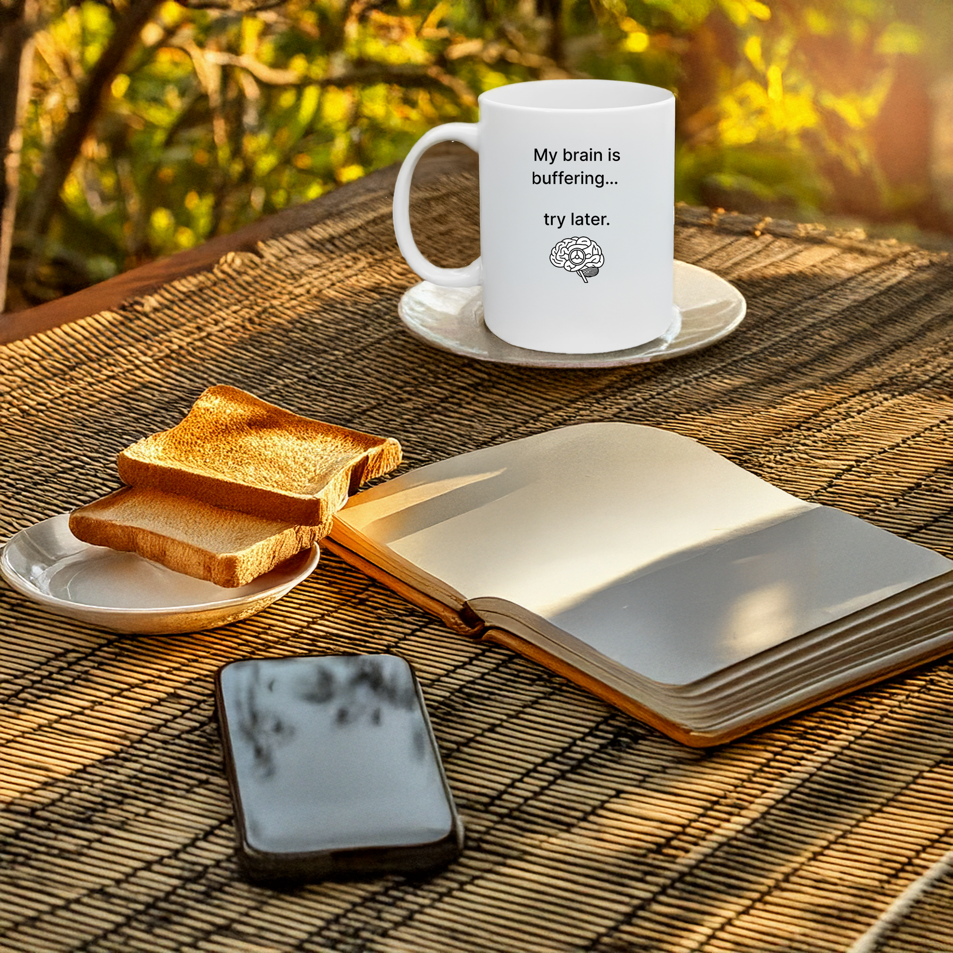 Warm up with a nice cuppa out of this custom ceramic mug designed for brains that wander and wonder. It's more than just a funny quote—it’s a whole mood.