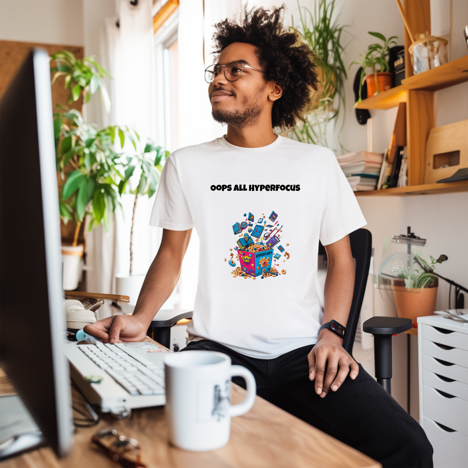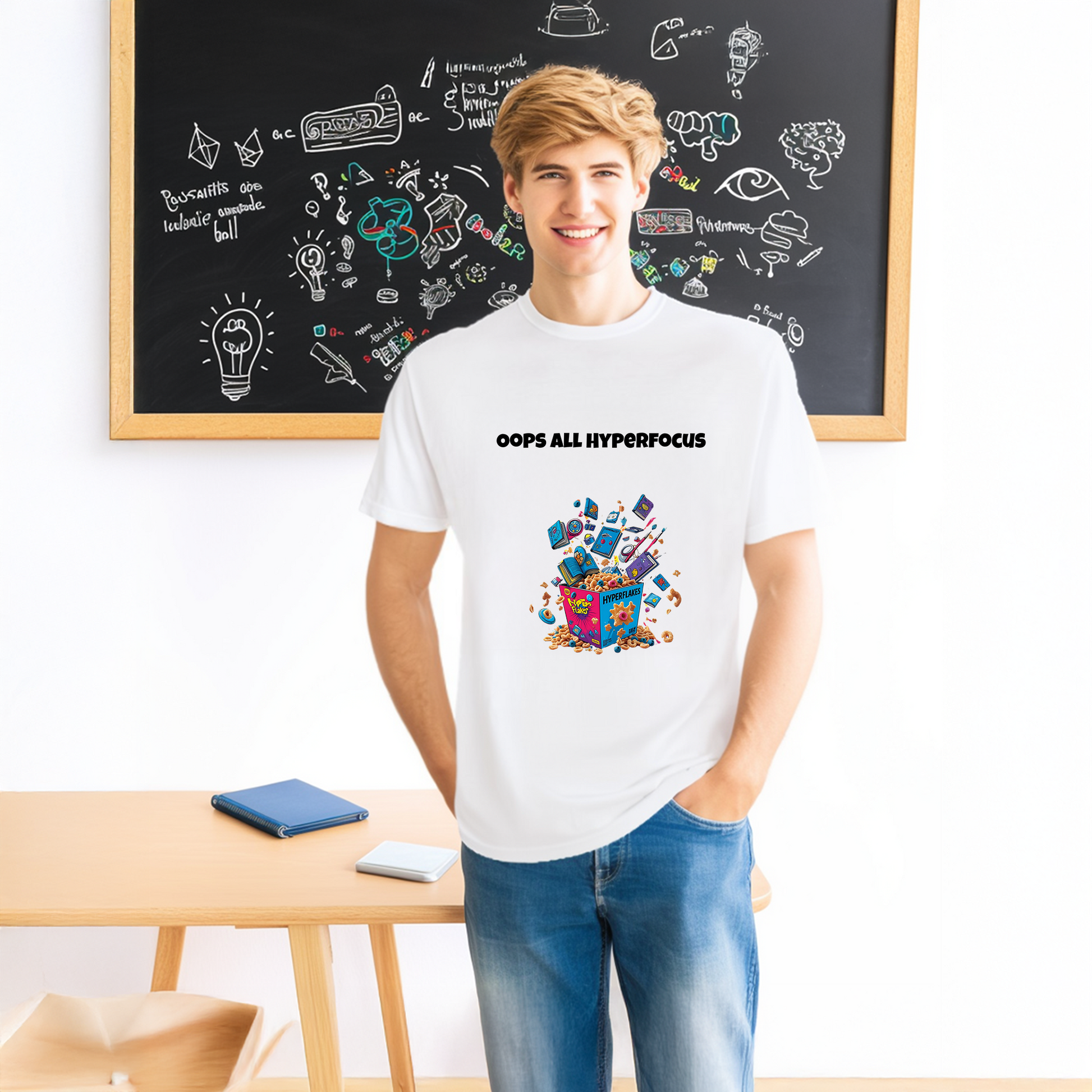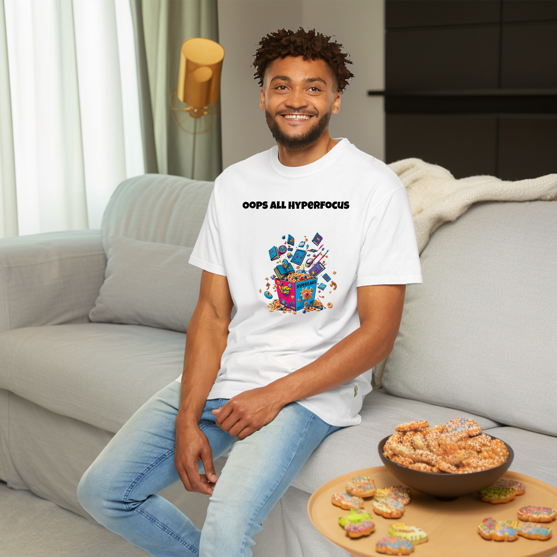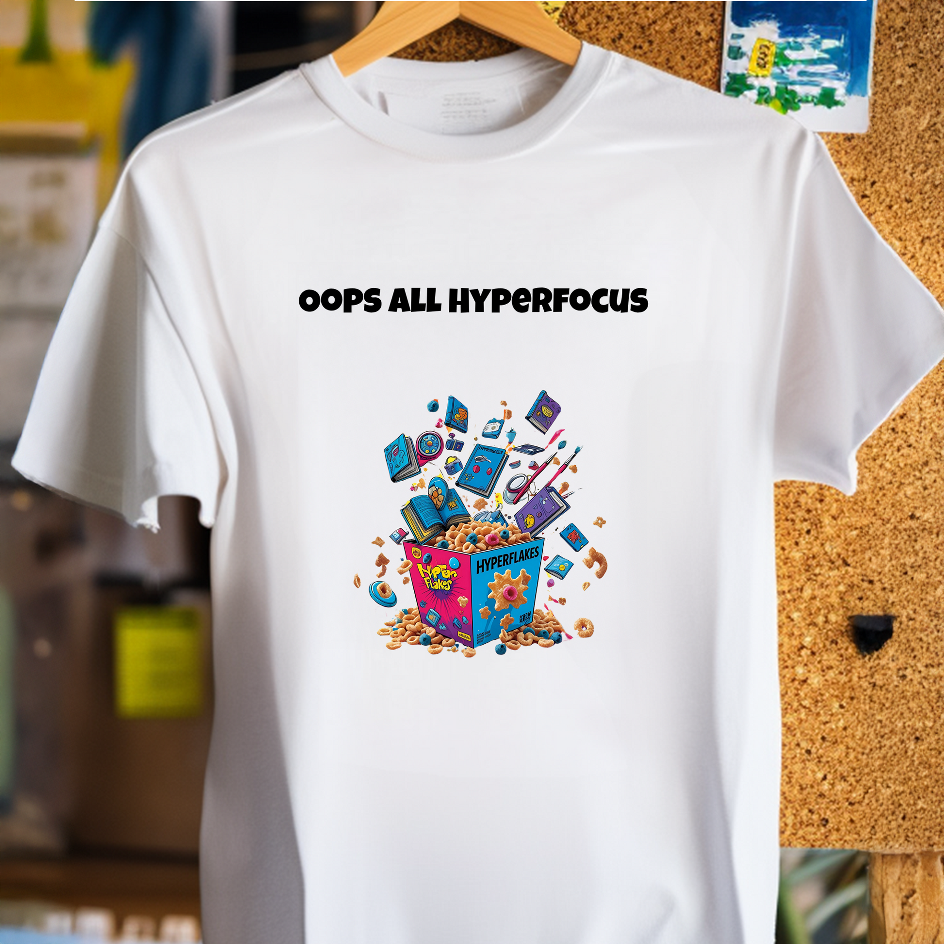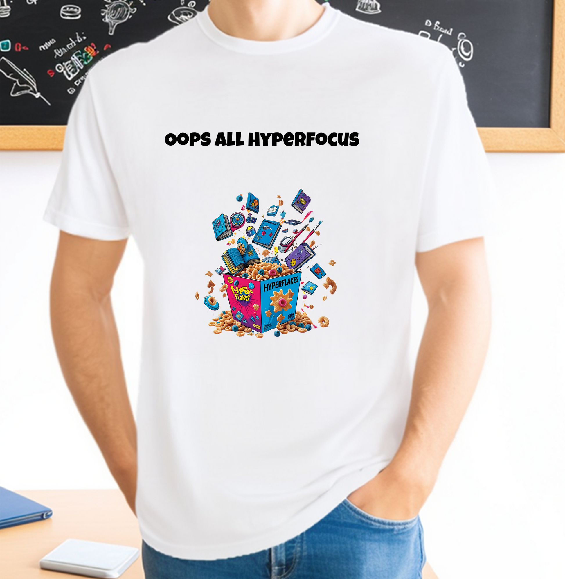 Oops All Hyperfocus ADHD T Shirt Funny Cereal Box Parody Unisex Neurodivergent Comfort Colors Tee for Hyperfocused Adults