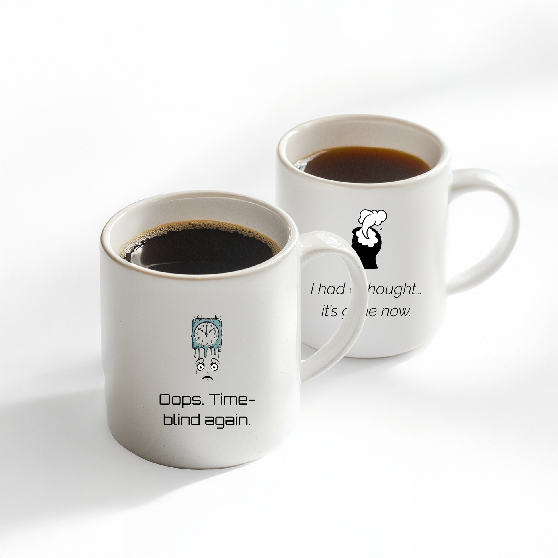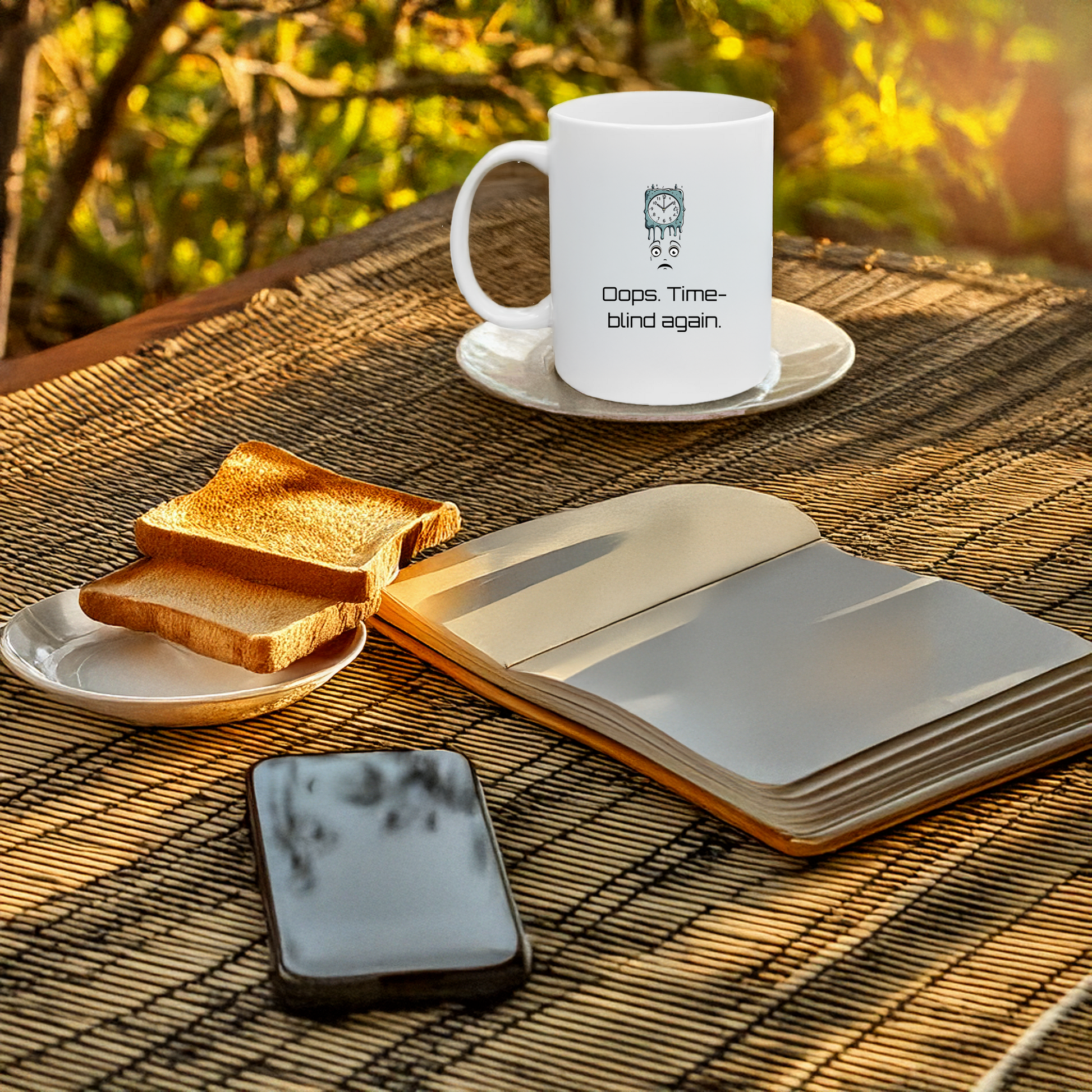 Oops, Time-Blind Again Mug – Funny ADHD Gift – Ceramic Mug for Chronically Late People