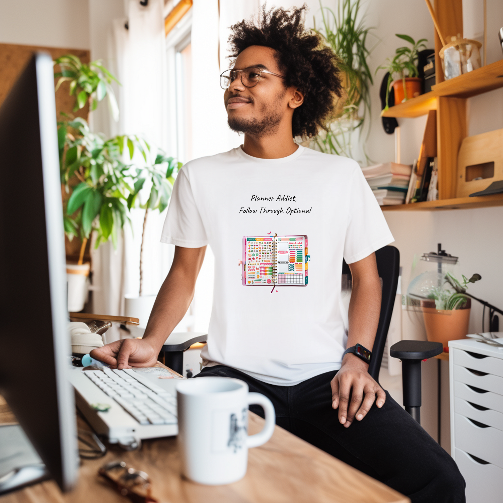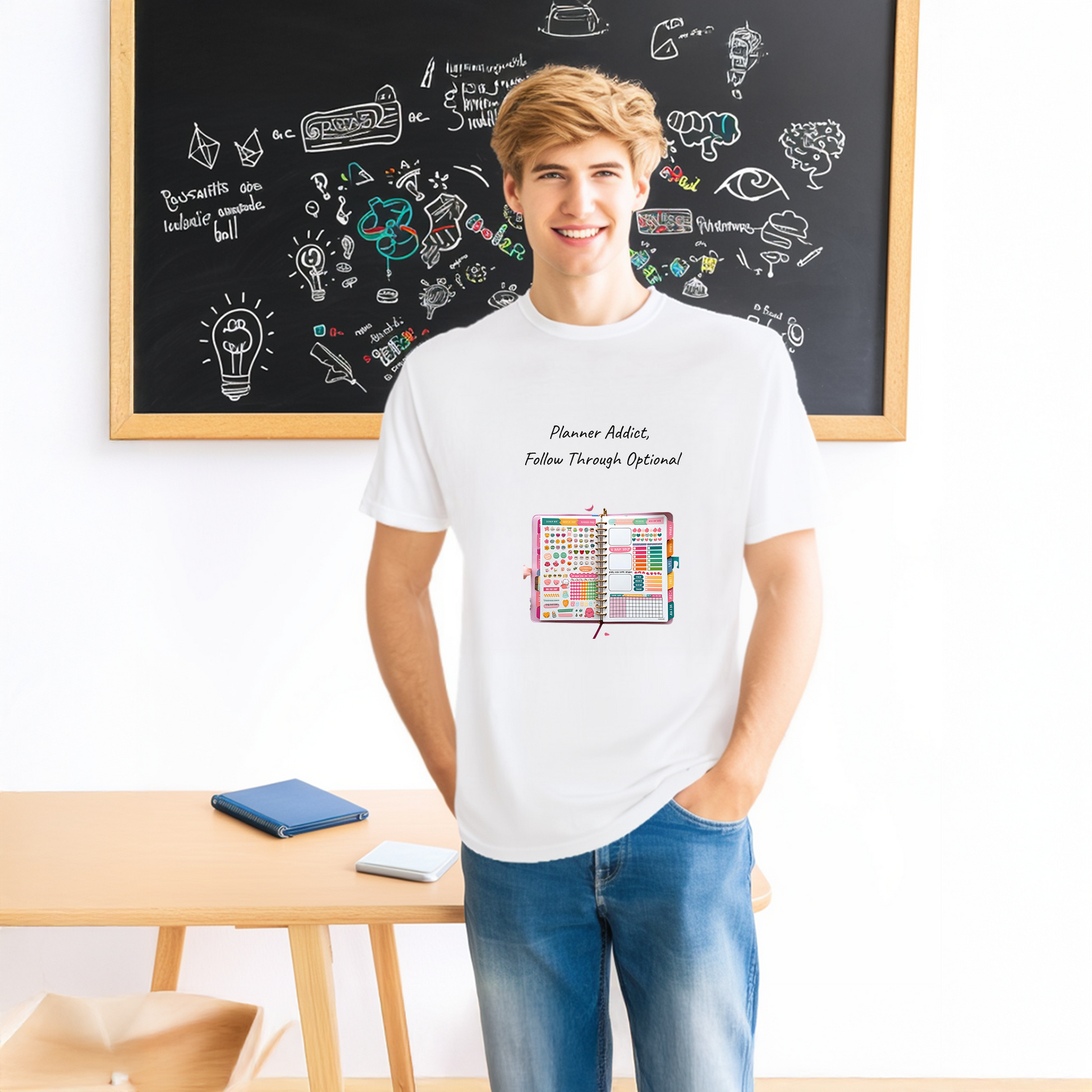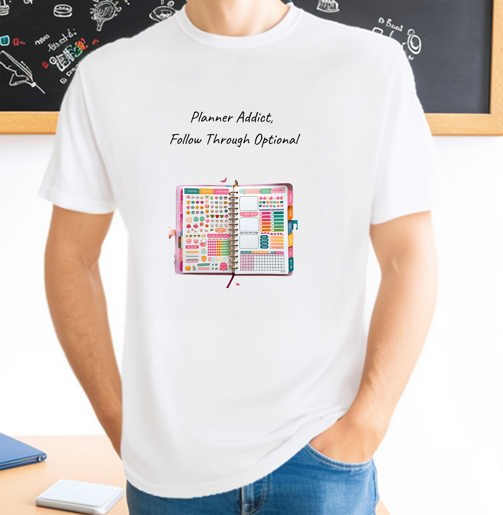 Planner Addict Follow Through Optional ADHD T Shirt Funny Bullet Journal Humor Gift Comfort Colors Tee for Neurodivergent Adult