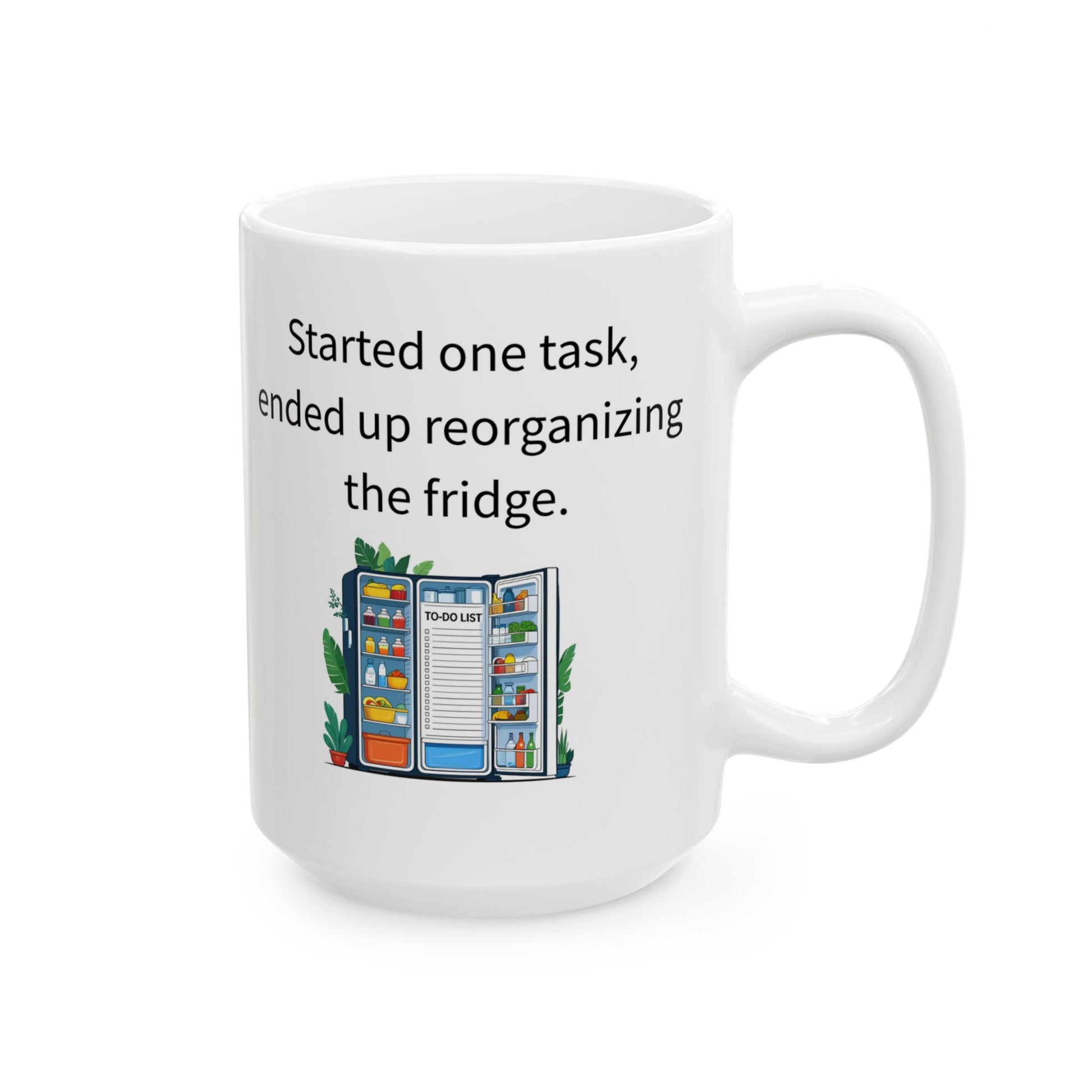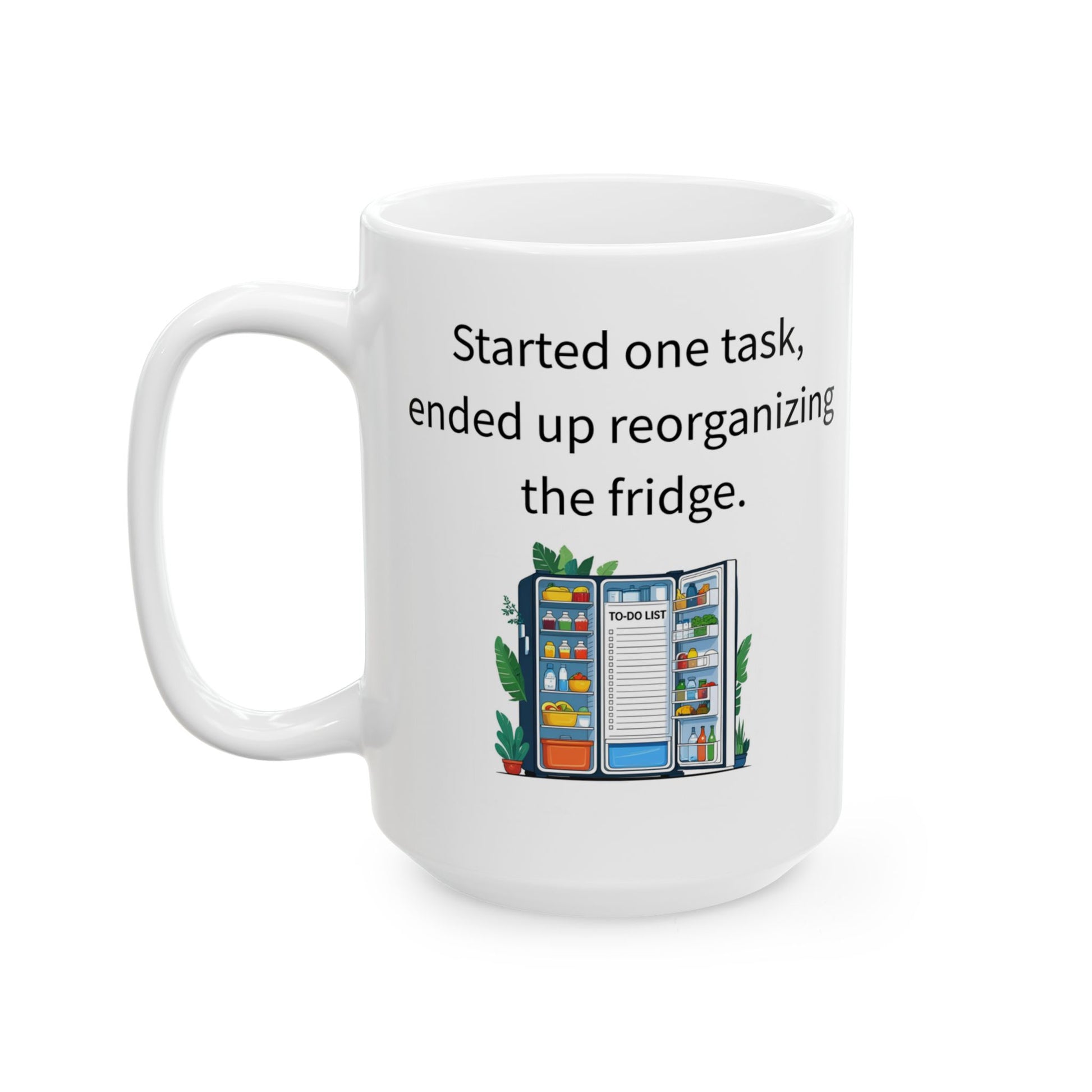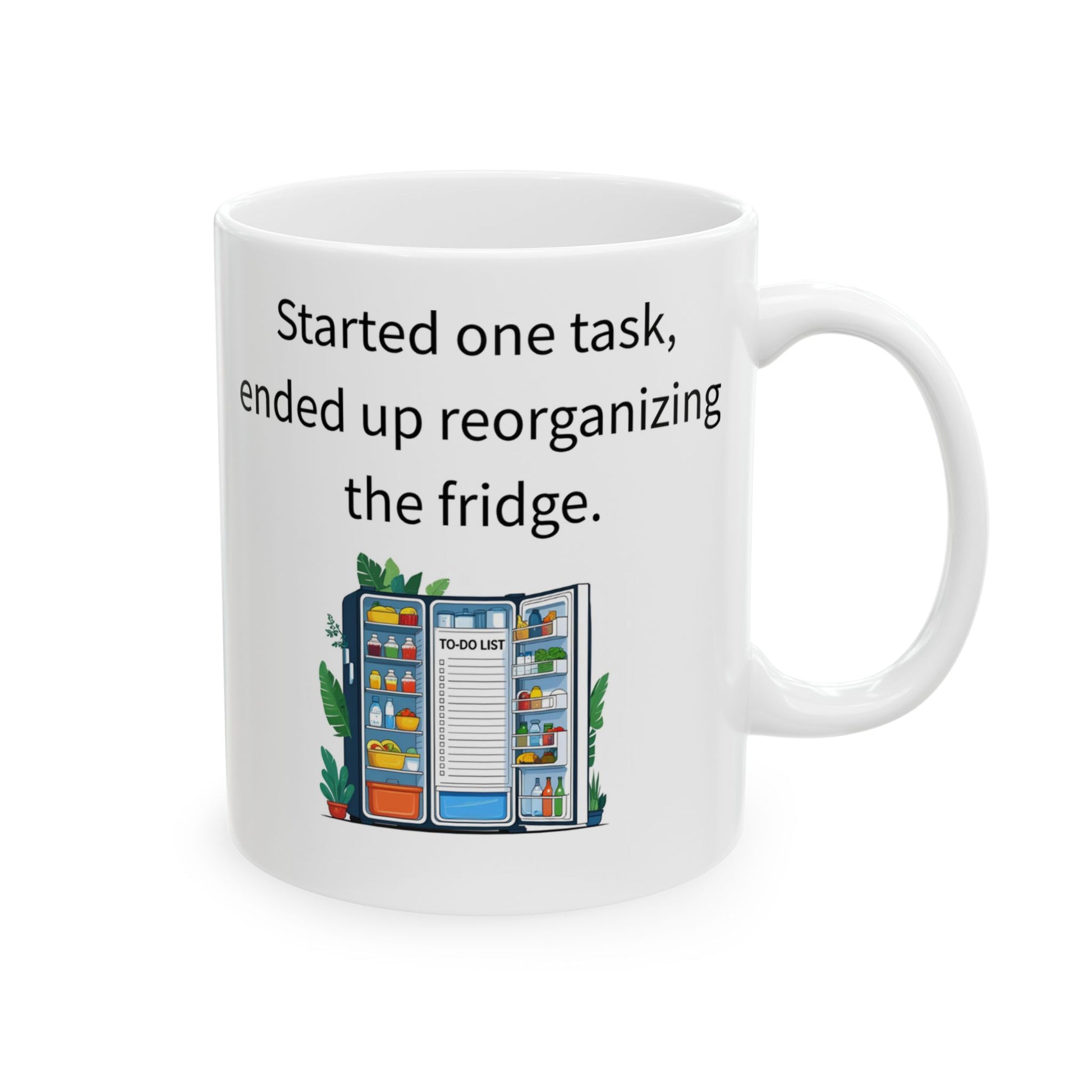 Started One Task, Fridge Reorganized Mug – Funny ADHD Coffee Cup – Neurodivergent Gift Idea