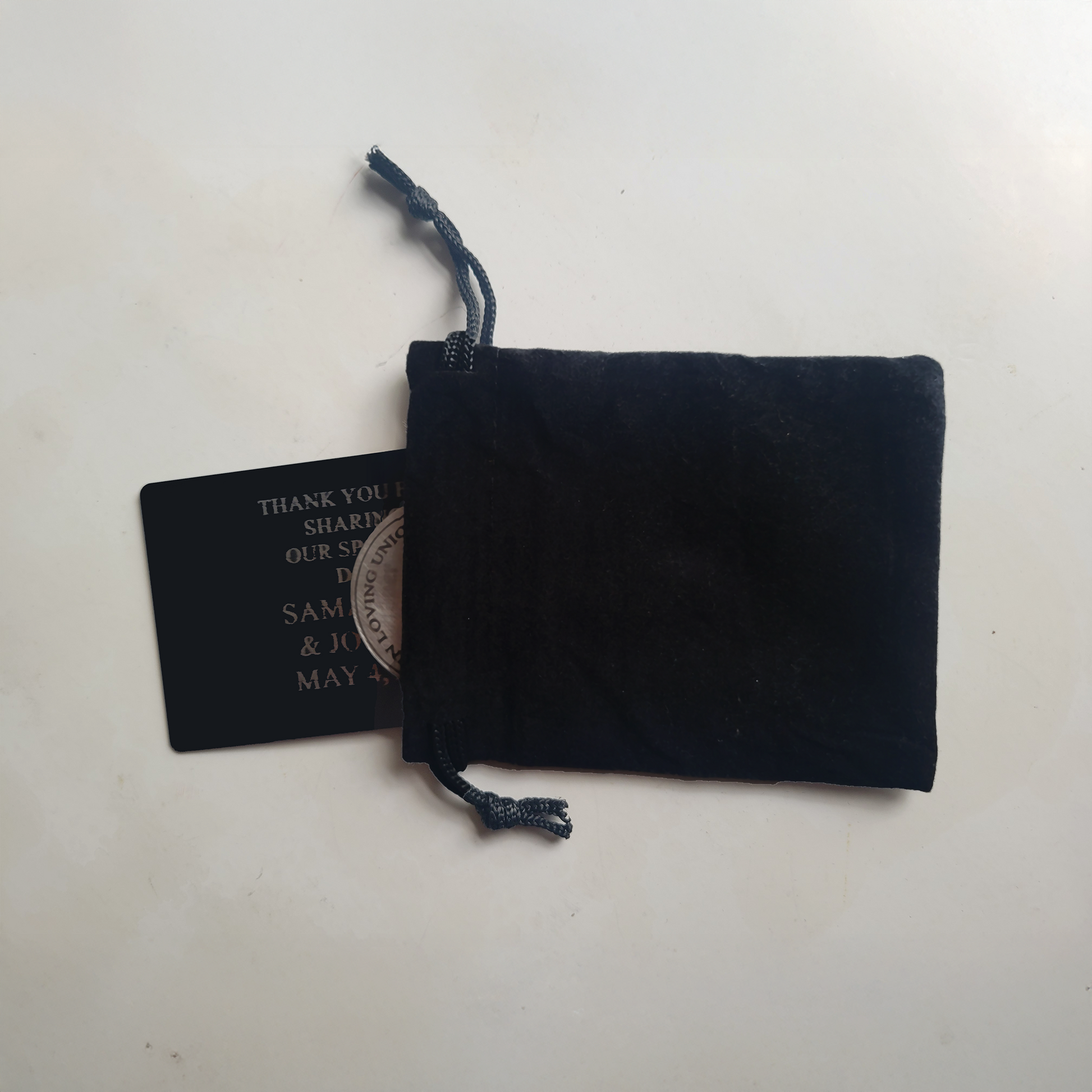 Celebrate your wedding day with a beautifully crafted personalized wedding coin, laser engraved with your names and date. Made from brushed stainless steel and optionally paired with a custom-engraved metal insert card, this keepsake is a heartfelt gift for the couple, guests, or members of the wedding party.