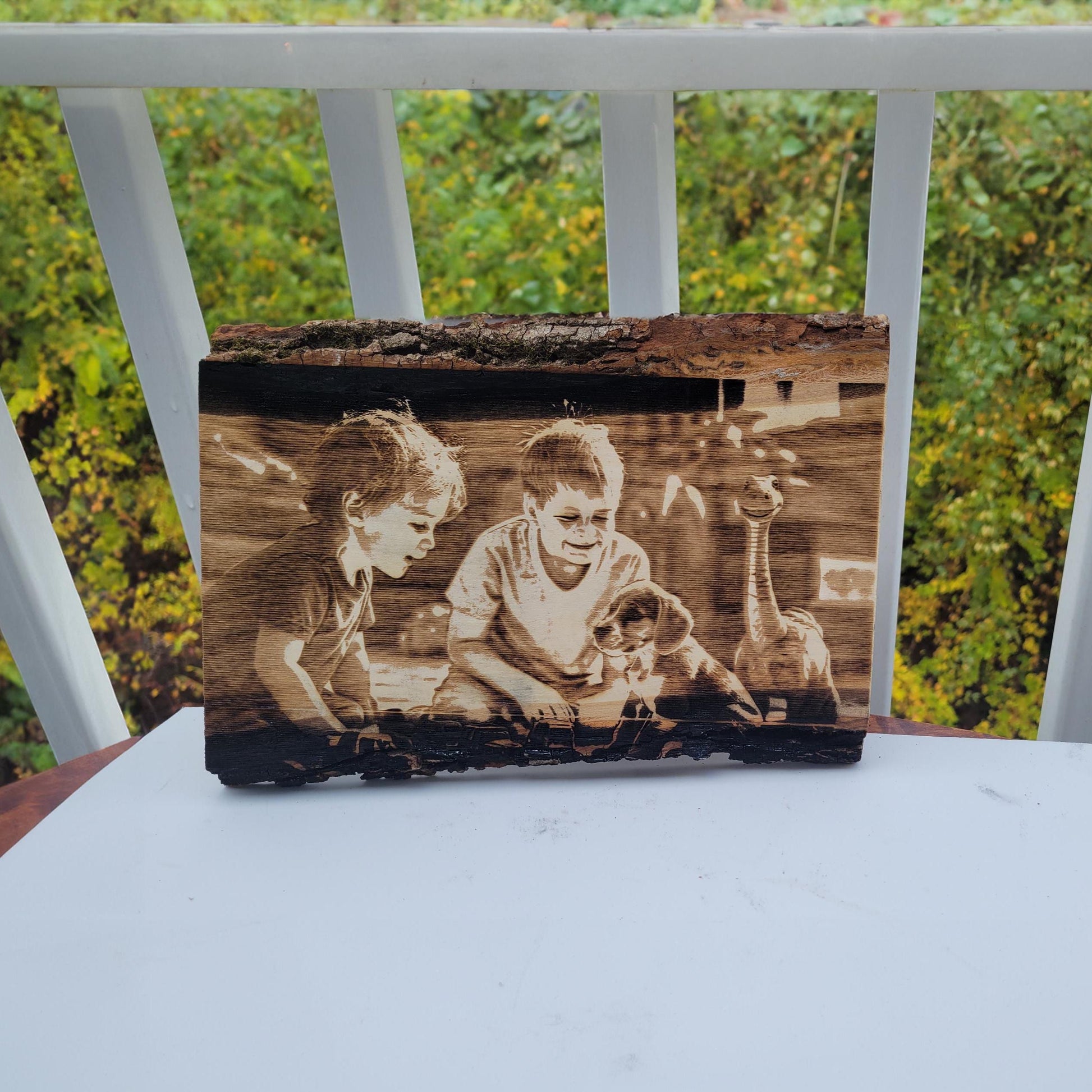 Wood photo wood slice photo gifts engraved laser engraved photo wood burned personal wood bark wood burned plaque wood burned picture